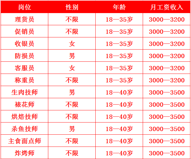 家家利超市忻州二店岗位招聘