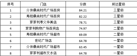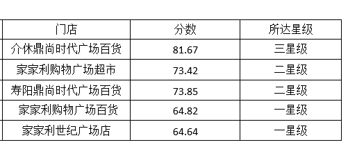 2014 年 11 月五星级门店评比“优胜门店”为家家利购物广场介休店, 将获得奖金 6500 元(根据“五星级门店”评比的激励政策比例划分奖金),奖金 于 2014 年 12 月 8 日发放。
