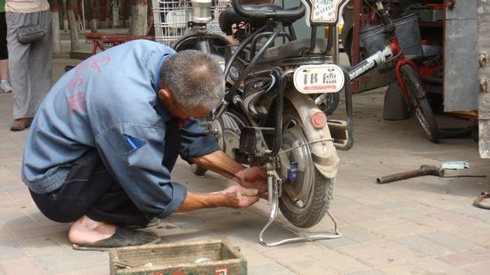 太谷百货商场 一天外面突然下起了大雨,只有停车场外保安在披着雨衣指挥着车辆,就在此时有一位阿姨讲到那边怎么了,下这么大的雨不避雨怎么推的电动车急匆匆的的走呢,这...